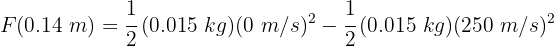 Una bala de 15 g viaja a 250 m/s penetra en un trozo de madera a una distancia de 14 cm. Encuentra la fuerza media necesaria para detener la bala.