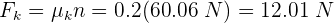 . Calculamos el peso W y con ello, la fuerza de fricción cinética