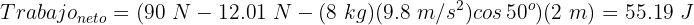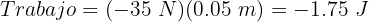 4Por último, el trabajo resultante es cero, ya que la fuerza neta del sistema es cero puesto que el resorte realiza una fuerza de la misma magnitud y opuesta a la fuerza de 35 N
