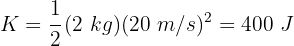 Encuentre la energía cinética de un mazo de 2 \kg en el instante que su velocidad es de 20 m/s.