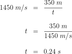1 El sonar de un barco envía verticalmente hacia el fondo del mar un pulso de ultrasonidos. Si la velocidad del sonido en el agua es 1450 m/s y el fondo del mar se encuentra a 350 metros, entonces el tiempo empleado por el pulso para regresar al barco es...