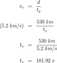 8Un terremoto produce ondas primarias que viajan a 7.62 km/s y ondas secundarias que se mueven a 4.81 km/s. Si el tiempo de llegada de las dos ondas a la estación de monitoreo tiene un retraso de 42 segundos, el tiempo le tomó a las ondas secundarias llegar desde el origen del terremoto hasta la estación sísmica es...