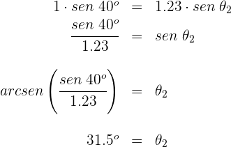 2 Utilizamos la fórmula de la ley de Snell