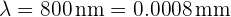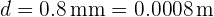 es la distancia entre las rendijas duplicada (0.8 mm = 0.0008 m). Entonces,