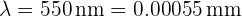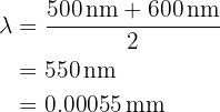 es la longitud de onda promedio entre 500 nm y 600 nm, es decir,