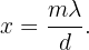 El ángulo entre dos máximos consecutivos de interferencia se calcula como
