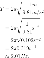 Un péndulo simple tiene una longitud de metro. Calcula el período de oscilación del péndulo.