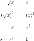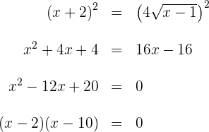 4 Comprobamos si las raíces obtenidas satisfacen la ecuación irracional inicial