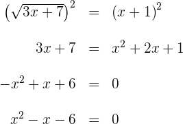 4 Comprobamos si las raíces obtenidas satisfacen la ecuación irracional inicial, aquellas que satisfacen serán soluciones mientras que aquellas que no satisfacen no serán soluciones