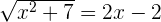 Resuelve las siguientes ecuaciones irracionales y escoge la opción correcta: