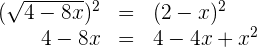 1 En este caso ya tenemos aislado el radical, por lo que elevamos ambos lados al cuadrado y se obtiene