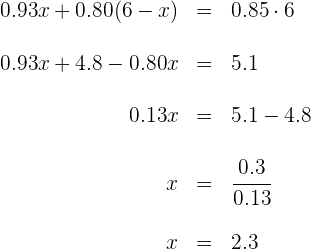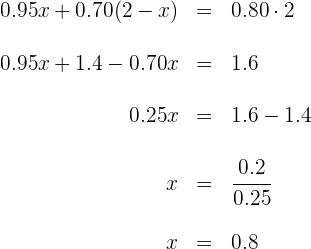 2Se tienen dos lingotes de plata, uno tiene un 65% de pureza y el otro un 90%. Queremos mezclar 2 kg del primer tipo y 1 kg del segundo, ¿de qué pureza será la mezcla obtenida?