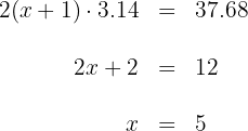 Hallar el valor del radio y del área de un círculo cuya circunferencia es