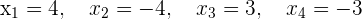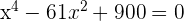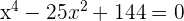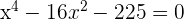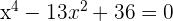 Esta ecuación bicuadrada tiene cuatro soluciones reales:
