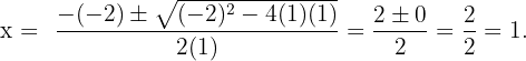 por lo que tiene una solución doble. Usando la fórmula general calculemos la solución