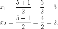 por lo tanto, debe tener dos soluciones reales distintas. Calculemos con la fórmula general las soluciones