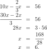14Si a diez veces un número se le resta dos tercios del mismo resulta 56, ¿cuál es ese número?