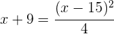 Dentro de 9 años, la edad de Ana será igual a un cuarto del cuadrado de la edad que tenía hace 15 años. ¿Cuál es la edad actual de Ana?