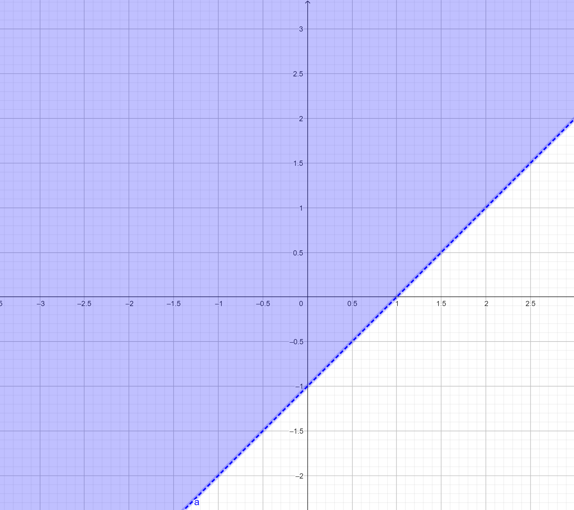 En este caso (mayor que, pero no igual) los puntos de la recta no pertenecen a la solución.
