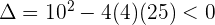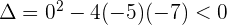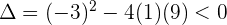 Como el discriminante es negativo, entonces no tiene raíces reales. Le damos al polinomio cualquier valor, por ejemplo