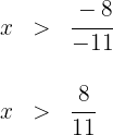 3Despejamos la incógnita, recordando que al dividir entre un número negativo se invierte elsímbolo