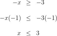 3 Multiplicamos ambos lados de la desigualdad por por lo que invertimos el símbolo de la desigualdad