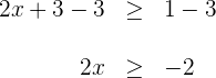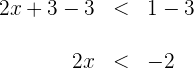 3 Resolvemos la segunda inecuación, para lo cual restamos en ambos lados de la desigualdad y obtenemos
