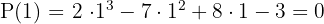 Aplicando el teorema del resto sabremos para cuáles de estos valores la división es exacta. Comenzamos con 1.