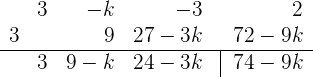 El procedimiento de la regla de Ruffini queda como sigue —observa que los coeficientes del dividendo se escriben en la primera fila—: