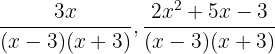 9Dadas las fracciones algebraicas , encontrar dos fracciones algebraicas equivalentes con común denominador.