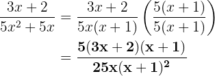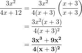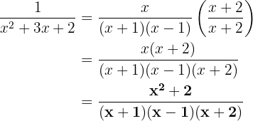 , encontrar dos fracciones algebraicas equivalentes con común denominador.
