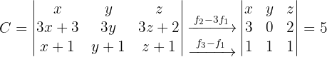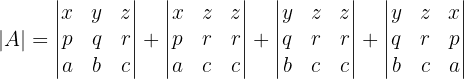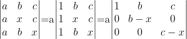 Nuevamente la segunda y tercera matriz tiene dos columnas iguales, por lo que su determinante será cero.