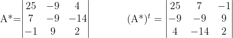 La matriz adjunta y la matriz adjunta transpuesta están dadas por