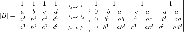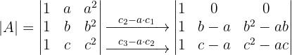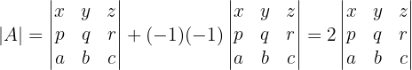 Pero la segunda y tercera matriz tiene dos columnas iguales, por lo que su determinante será cero. Así que