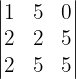 Tiene dos columnas iguales, por lo tanto su determinante debe ser igual a 0.