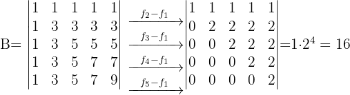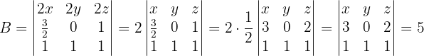 No nos interesa saber el valor exacto de la última matriz, pues sabemos que debe ser un número entero y que al multiplicarse por el 5 de la izquierda, el determinante de