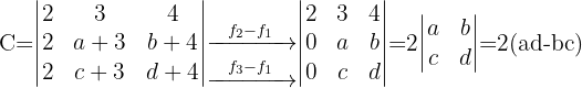 La sugerencia sería: «Es decir, si una fila (o una columna) la transformamos en una combinación lineal de las demás y de ella misma, el valor del determinante no varía.»