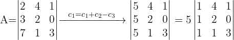 1 Determinante de A A la columna 3 le sumamos la columna 2 y obtenemos: