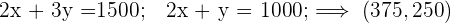 La solución óptima, si es única, se encuentra en un vértice del recinto. Estas son las soluciones a los sistemas: