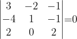 As\'i que la matriz tiene rango a lo menos dos. Al calcular el determinante de