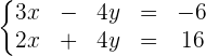[7x-3y=2 3x+4y=-15