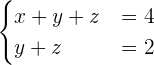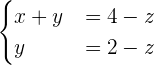 Como en este caso tenemos más incógnitas que ecuaciones, tomaremos una de las incógnitas (por ejemplo la z) y la pasaremos al segundo miembro.