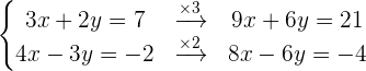 [7x-3y=2 3x+4y=-15