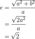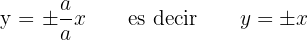 por lo que las asíntotas son las bisectrices de los cuadrantes. - Su excentricidad viene dada por: