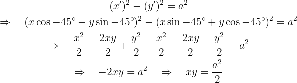 De lo anterior, tendremos que la ecuación de la hipérbola equilátera después de un giro de es