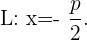 La parábola es horizontal y tiene de parámetro p=1 y se sustituye en y^2=4px i x=-p quedando y^2=4(1)x y x=-1 o y^2=4x y x+1=0, ecuación de la parábola y directriz.