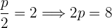 Simplificando la expresión, se obtiene la ecuación reducida de la parábola cuando ésta abre a la derecha: