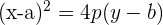 Por ejemplo encontrar la ecuación de la parábola con vértice en el origen y foco F(1,0):