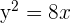 Por ejemplo encontrar la ecuación de la parábola con vértice en el origen y foco F(1,0):
