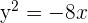De esta forma podemos plantear una ecuación de la parábola. Dado que la parábola es horizontal por definición y está centrada en el origen su ecuación está dada por